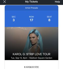 Karol G Ticket$390Union, NJ