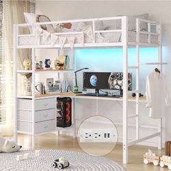 White Loft Bed Twin Size with L-Shaped Desk$110Irwindale, CA