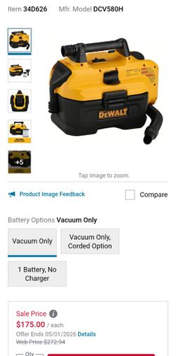 Dewalt Vacum Cord N Battery Operated$40Hemet, CA