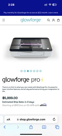 Glowforge Pro For Sale $2,000.00$2,000Virginia Beach, VA