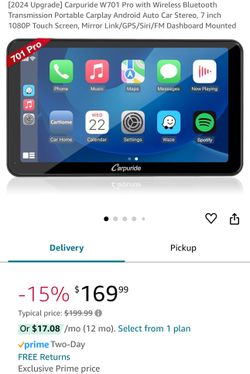 [2024 Upgrade] Carpuride W701 Pro with Wireless Bluetooth Transmission Portable Carplay Android Auto Car Stereo, 7 inch 1080P Touch Screen, Mirror Lin$150Downey, CA
