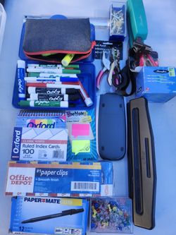 Pens Cards Paper Clips Stapler Staples Dry Erase Markers Texas Instrument Calculator Highlighter Hole Punch Lot$30San Diego, CA