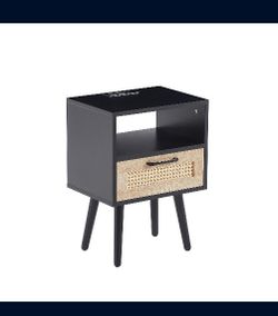 15.75 Rattan End table with Power Outlet & USB Ports , Modern nightstand with drawer and solid wood legs, side table for living room, bedroom,black$45Fontana, CA