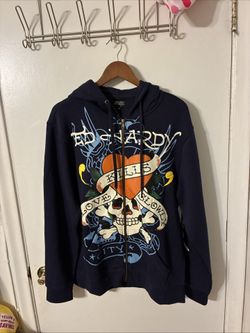 NWT Sz M Ed Hardy Love Kills Slowly Skull Mens Zip Up Hoodie Berry Blue Heart$45Miami, FL
