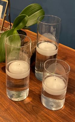 48 Glass Candle Holders. Glass Cylinder. Weddings 16 of each size 3.25 in dx 6 in 3.25 in x 7.5 in 3.25 in x 9 in $200Philadelphia, PA