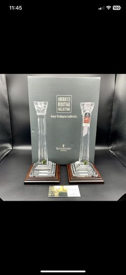 Waterford Crystal George Washington Candlestick Holders 11.75” Set w/ Wood Bases (3.25 LBS EACH) | Vintage IRELAND Candle Holders (MSRP $585) HTF NIB$289Ronkonkoma, NY