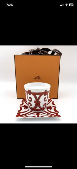 Hermes Balcon du Guadalquivir Red Votive Candle Holder Set with Square Plate N°2 HTF (BNIB/NEVER USED OR DISPLAYED)$439Holbrook, NY