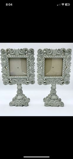 2 Distressed Farmh0use Shabby Chic Gray Baroque Picture Frames Pedestal Footed Stand 11” (4x4 Photos) Italian (EUC)$55Ronkonkoma, NY