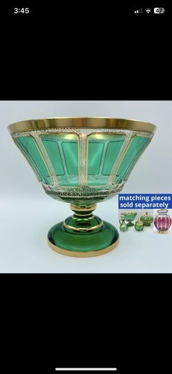 Bohemian Moser Cabochon Footed Bowl 8” Emerald Green Panels Crystal with 24K Gold Trim ANTIQUE$339Holbrook, NY