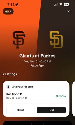 SF Giants @ SD Padres 2 AISLE Seats $90ea$90San Diego, CA