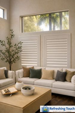 Refreshing Touch Window Coverings, your local, family-owned window treatment specialists. Serving all of San Bernardino County, Riverside, County, Orange County, and Los Angeles County, we specialize in Shutters, Shades, and Blinds, offering top-quality, affordable products. Call or Text us today at 909-681-7003 to enhance your home or office with beautiful, budget-friendly window solutions!