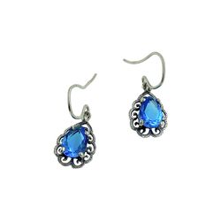 1980s Drop Dangle Earrings, 925 Sterling Silver, Blue Glass Stones, Filigree Open Metalwork, Regency Victorian Romantic Style$29Ossining, NY