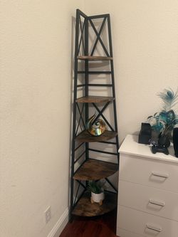 72 Inch Tall Corner Shelf, 5 Tier with Metal Frame, Rustic Brown vintage board$85Clovis, CA