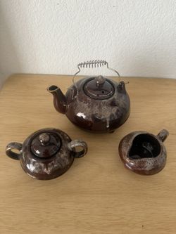 3 Piece Japanese Red Clay Pottery Teapot Set Brown Glaze&Pink Blue Metal Handle$20Clovis, CA