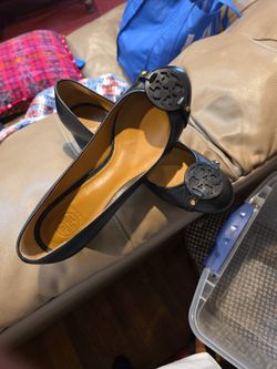 Tory Burch Women's Mini Miller Black Wedge Leather Logo Pump Size: 9M$85South San Francisco, CA