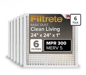 3m Filtrete 24x24x1 Air Filter, MPR 300, MERV 5, Clean Living Basic Dust 3-Month Pleated 1-Inch Air Filters, 6 Filters$15Glendora, CA