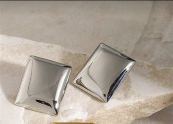 Square Gold Silver Stud Earrings Women Metal 2.9cm x 2.4cm Butterfly Closure New$9Naperville, IL
