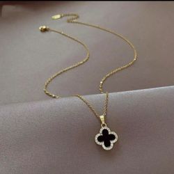 Necklace Women Gold Clover Charm Pendant Necklace with Black & Stones New$8Naperville, IL