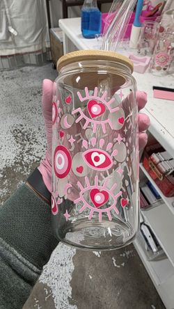Pink Evil Eye 16floz Glass Cup With Lid And Straw $12Henderson, NV