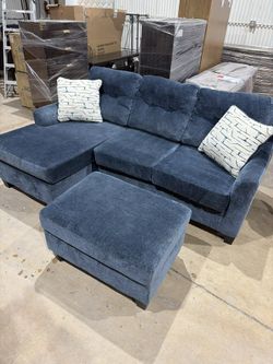 Beautiful Blue Sectional Sofa Couch - Reversible Chaise Lounge - Matching Ottoman - Cleaned/Comfy - Delivery Available $425Lake Forest, IL