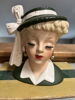 VTG Brinn's Head Vase Lady Hat Flower Pink Shawl 60s Granny Core Eclectic$49Bakersfield, CA