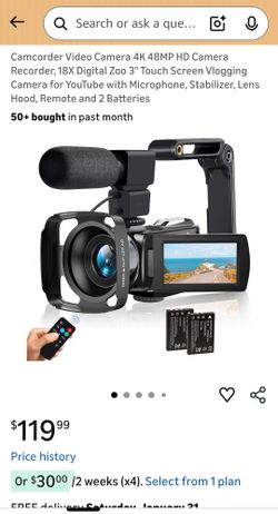 Camcorder Video Camera 4K 48MP, 18X Zoom 3" Touch Screen, For YouTube Vlogging$80San Diego, CA
