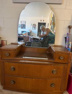 Mid Century Tiger Wood Sideboard/Vanity W/mirror$350Palm Desert, CA