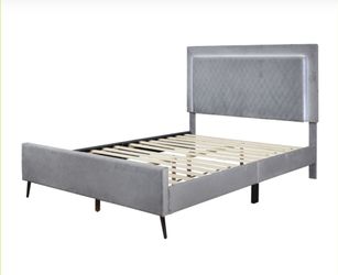 New Gray Velvet Queen Size Platform Bed Frame Only With LED Light $249Las Vegas, NV