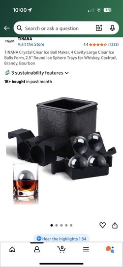 TINANA Crystal Clear Ice Ball Maker, 4 Cavity Large Clear Ice Balls Form, 2.5” Round Ice Sphere Trays for Whiskey, Cocktail, Brandy, Bourbon$20Temecula, CA