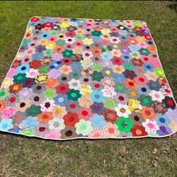 VTG Grandmother Garden Patchwork Hexagon Flower Quilt Retro 89x96 Colorful Boho$275San Diego, CA