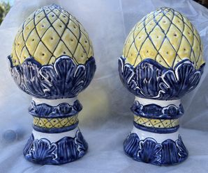 Pristine Pair Lis Ceramica Brasil Hand-Painted Pinecone Finials - MINT$275Garden Grove, CA