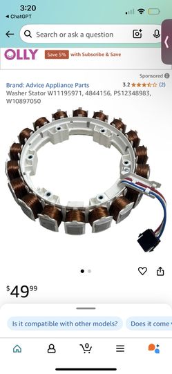 Washer stator, part number W11195971$50Patterson, CA