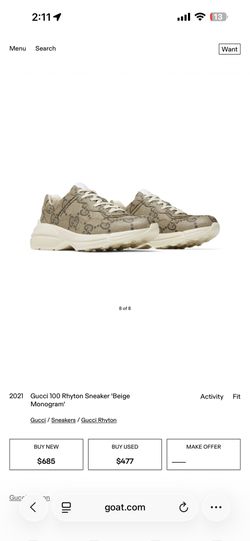 $320 USED Gucci 100 Rhyton Sneaker 'Beige Monogram Men’s SIZE 12$320Pawtucket, RI