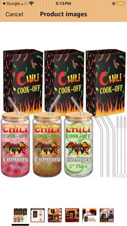 3 Pcs Chili Cook off Trophies Glass Tumbler Set with Lid Straw Brush and 16 oz$15Fresno, CA