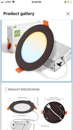 2 Pack 4 Inch 5CCT Ultra-Thin LED Recessed Ceiling Light with Junction Box$10Fresno, CA