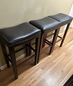 Set of 3 Dark Brown Faux Leather Bar Stools with Nailhead Trim. Read Description$100Vancouver, WA