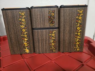 Vintage Flower Power Kitchen Canisters Yellow Avocado Faux Wood Metal 4pc$40Mesa, AZ