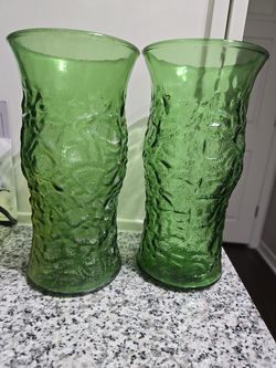 Vintage Hoosier green Crinkle glass Vases$10Phoenix, AZ