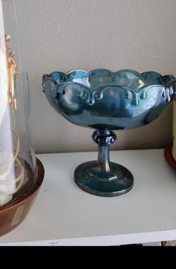 Vintage blue turquoise Carnival Glass pedastal bowl vase candy dish Easter decorations$24Phoenix, AZ