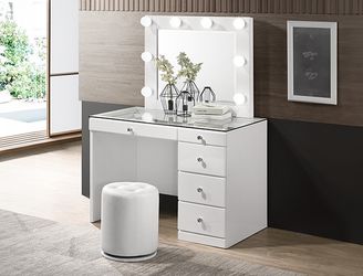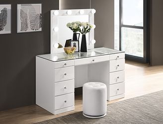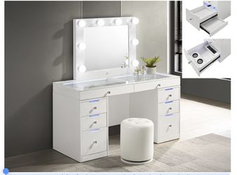 Large White Glossy Vanity With Storage On Both Sides Crystal Knobs Led Mirror And White Matching Stool$650Hacienda Heights, CA