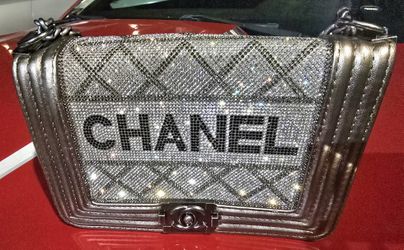 Chanel Rhinestone Boy Flap Bag Silver Metallic Leather Crystal Logo Made in France$1,200Las Vegas, NV