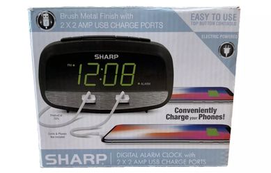 Sharp - 2/2 Amp USB Charge LED Alarm Clock Black$10Carmichael, CA