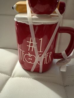 Rae Dunn #1 Teacher Mug With Apple And Pencil Topper Red Teacher Gift NWT$25Carmichael, CA