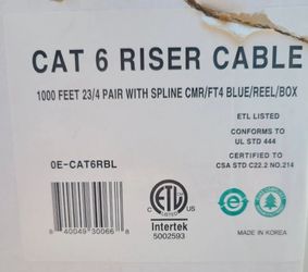 cat6 CMR with Spline 350Mhz UTP Copper Wire 23AWG aprx 600ft Blue ethernet cable$70Centerville, OH
