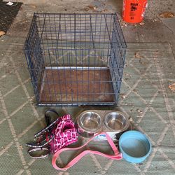 Dog Cage And Bowls + Collars And Leashes $50Farmington Hills, MI