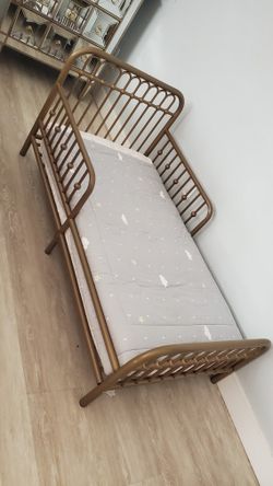 Metal Toddler bed (gold) with mattress$100San Diego, CA
