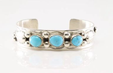 Native Navajo Sterling Silver Turquoise Bracelet 3 Stones Cuff$350Seattle, WA