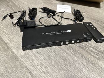 8K Displayport KVM Switch 4 Computers 1 Monitor 4K144Hz 4 Port KVM Sharing 1 Monitor and 4 USB 3.0 Device with Controller Support Extended/Copy Mode$60Bonney Lake, WA