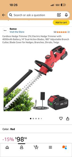 Cordless Hedge Trimmer 21V, Electric Hedge Trimmer with 4000mAh Battery, 14" Dual-Action Blades, 180° Adjustable Branch Cutter, Blade Cover for Hedges$75Marietta, GA