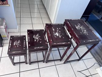 Elegant Set of 4 Vintage Chinese Rosewood Nesting Tables - Mother of Pearl Inlay (Plum Blossom & Birds Design) - Beautiful Condition!$360City Of Industry, CA